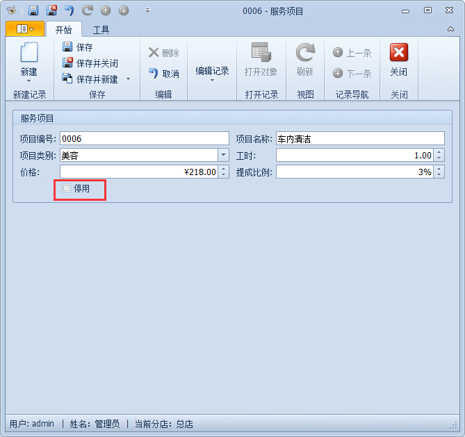 ②當(dāng)不需要再銷售該項服務(wù)嗎,可做停用處理,銷售開單時就不會出現(xiàn)該項服務(wù)選項,又不影響之前業(yè)務(wù)的數(shù)據(jù)分析。