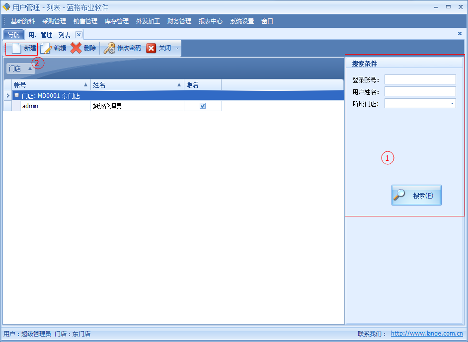 傲藍布匹管理系統(tǒng)用戶管理功能主要是對于布行管理系統(tǒng)操作者的管理,可以自行添加使用軟件系統(tǒng)的用戶或禁止指定用戶,被禁止的用戶不能登錄使用傲藍布行管理系統(tǒng)。