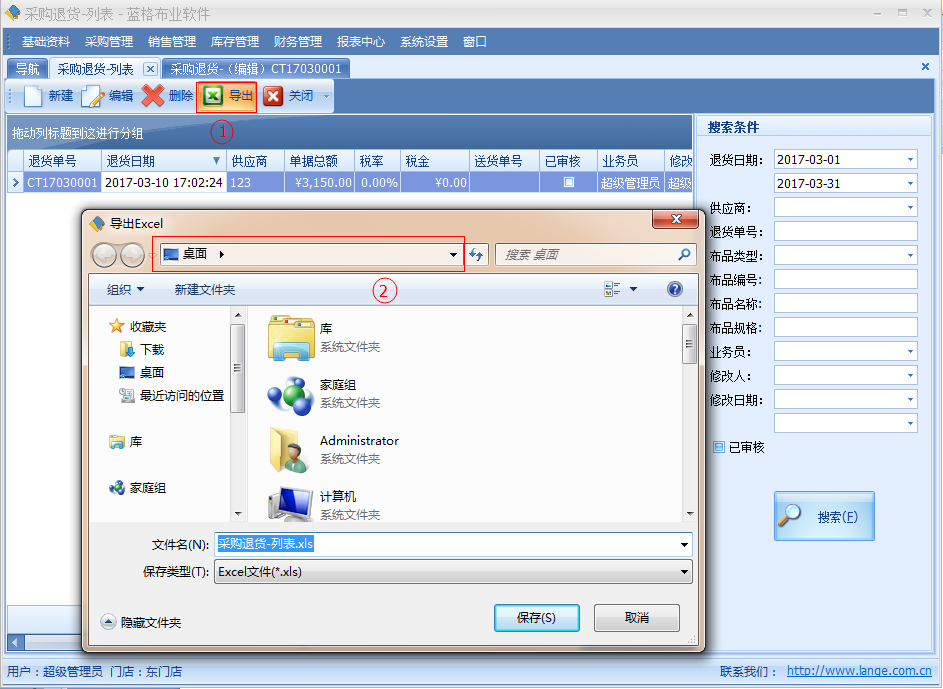 導(dǎo)出是把當(dāng)前列表中所有的記錄以 Excel 表格方式導(dǎo)出。在采購?fù)素浟斜砩宵c擊工具欄【導(dǎo)出】按鈕。
