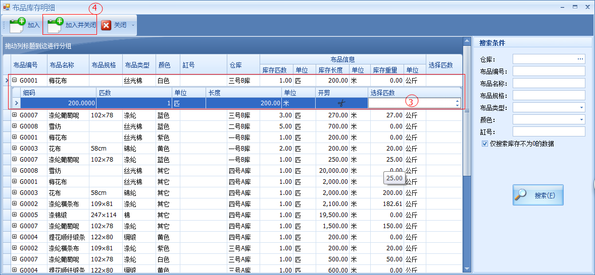 ○4 加入數(shù)據(jù)到明細(xì)并關(guān)閉當(dāng)前界面