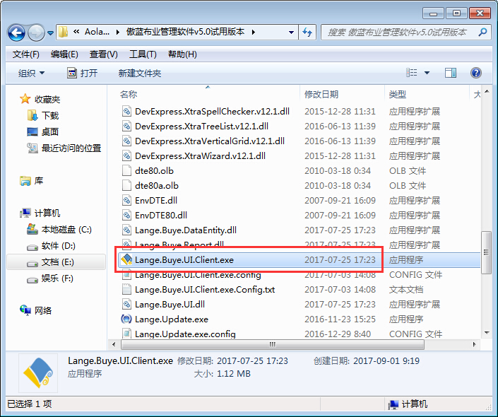 2.下載后可以把壓縮文件存放到D盤并新建一個“傲藍布業(yè)管理系統(tǒng)”文件夾再解壓出來,如下圖所示運行該文件: