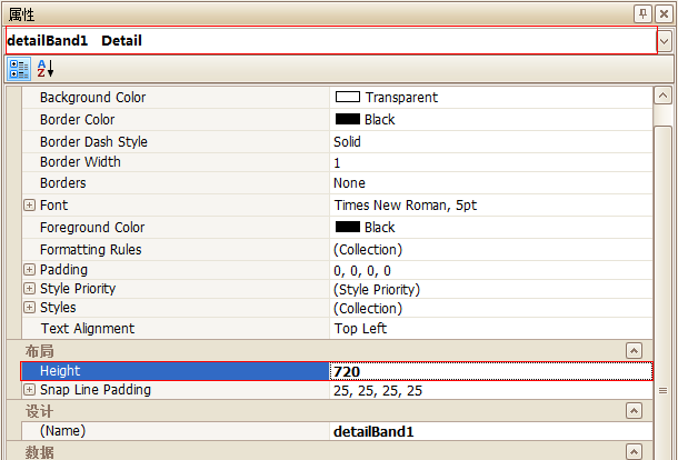 這里把Height設(shè)置為720,即與報表顯示的高720一致。