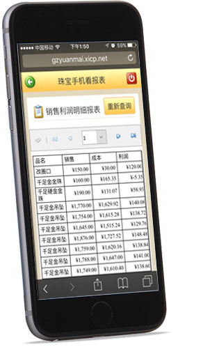 概況:傲藍(lán)珠寶手機(jī)看報(bào)表軟件手機(jī)看報(bào)表應(yīng)用于查看每天、每周、每月的營(yíng)業(yè)收入,采購(gòu)情況,實(shí)時(shí)庫(kù)存以及每天的金價(jià)變動(dòng)等;通過(guò)手機(jī)看報(bào)表系統(tǒng)遠(yuǎn)程遙控查看實(shí)時(shí)了解各分店的營(yíng)業(yè)情況,各分店的員工銷(xiāo)量情況,無(wú)論出差還是在家,都可實(shí)時(shí)了解員工的工作情況,做到心中有數(shù),店鋪情況盡在掌握中。