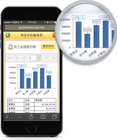 傳統(tǒng)的員工業(yè)績(jī)統(tǒng)計(jì)都是需要財(cái)務(wù)部根據(jù)員工一定時(shí)間的業(yè)績(jī)進(jìn)行統(tǒng)計(jì),數(shù)據(jù)容易出錯(cuò),不夠靈活化,不方便企業(yè)的管理員隨時(shí)查看員工業(yè)績(jī)情況。傲藍(lán)珠寶手機(jī)看報(bào)表管理軟件可以更好解決這些問(wèn)題,系統(tǒng)自動(dòng)將員工的業(yè)績(jī)情況分析,并通過(guò)柱型圖和表格的形式展示員工的業(yè)績(jī)。
