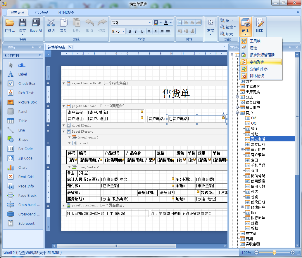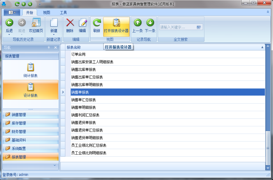 傲藍(lán)家具銷售管理軟件具備報(bào)表設(shè)計(jì)功能,給門店提供自定義的銷售單據(jù)、報(bào)表設(shè)計(jì)需求,根據(jù)店鋪的需求可以自定義添加或減少字段,實(shí)現(xiàn)在單據(jù)上呈現(xiàn)個性化需求的內(nèi)容信息,滿足各個不同家具門店的銷售單設(shè)計(jì)需求。