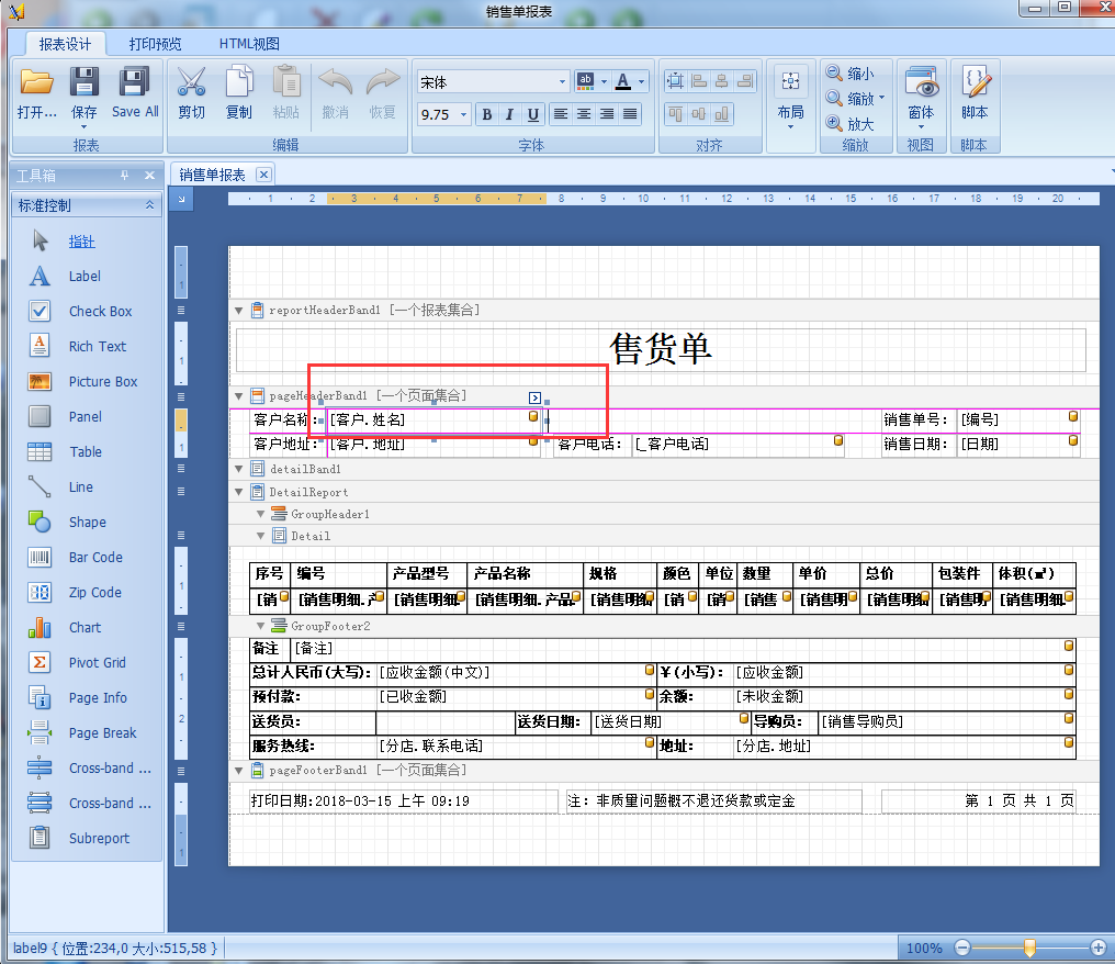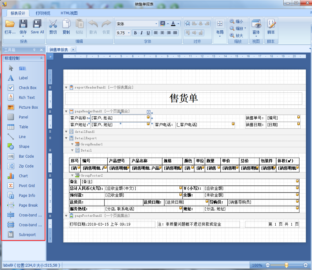 4、工具箱可以在報(bào)表添加對應(yīng)的內(nèi)容,如:標(biāo)簽、復(fù)選框、圖片、表格等等。