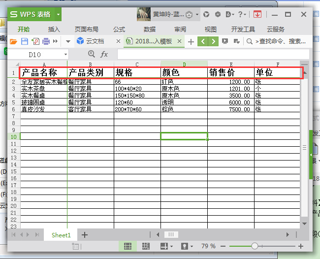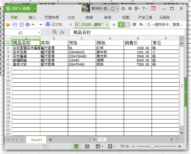 ①已有一個制成excel表格的家具產(chǎn)品資料信息,如圖:
