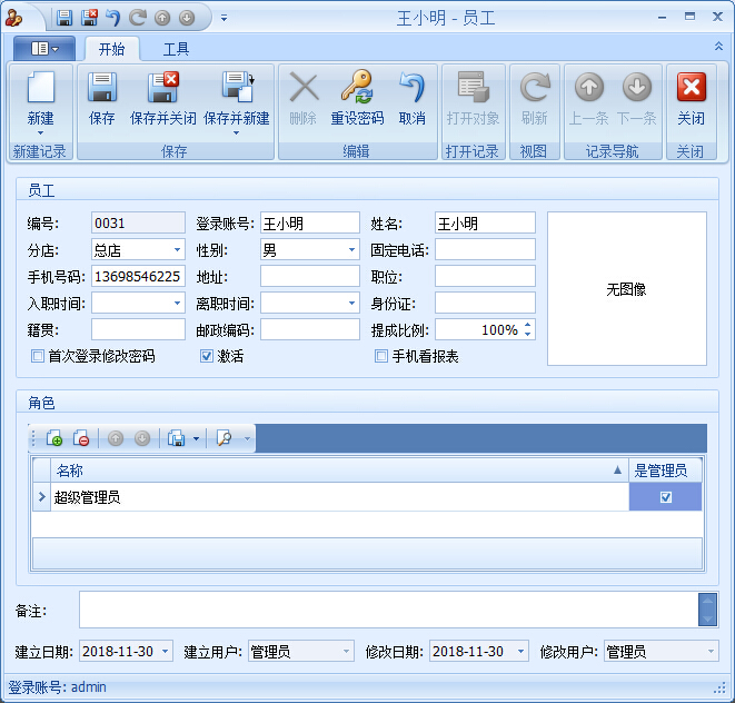 員工:【系統(tǒng)配置】→【員工】→新建