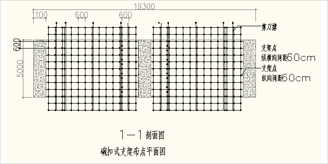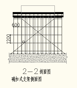 縱向間距120cm,頂部根據(jù)混凝土位置安裝U型支托調(diào)整。碗扣支架橫向設(shè)置2×60cm+1×20cm +8×60cm +1×20cm+2×30cm,平面布置的立桿縱向間距和橫向間距均為60cm×60cm。支架立面圖、平面圖及側(cè)面圖如下圖所示。