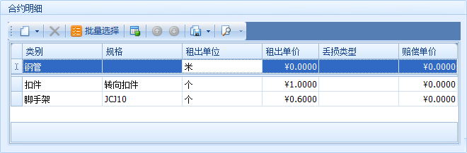 其實,這個選項功能適用于如鋼管,扣件等材料規(guī)格有很多,但是租出單價是一致的建筑材料。用戶將此類別材料或設(shè)備勾選了按類別租出,在新建編輯租出或租入合約時,填寫【合約明細(xì)】時就可以直接選擇租出類別,不用選擇規(guī)格,整個類別的租出單價一致。開租出單時再選擇具體的出庫規(guī)格便可。