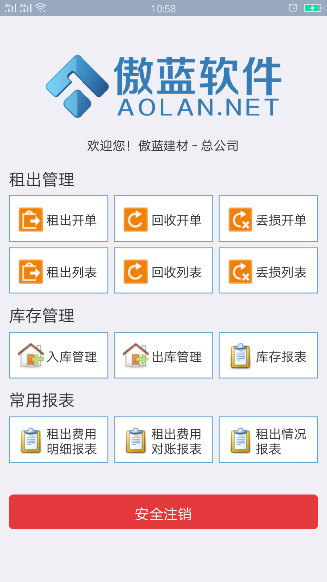 傲藍(lán)建筑租賃管理軟件手機(jī)app應(yīng)用管理,可以使工地現(xiàn)場、倉庫現(xiàn)場及業(yè)務(wù)員銷售情況及時反饋給總部。公司員工通過移動端手機(jī)APP,登記好每筆業(yè)務(wù):租出、回收、丟損、施工、銷售、入庫、出庫等。信息及時反饋到總部,總部可以隨時掌控各個工地的情況,及可用庫存情況。
