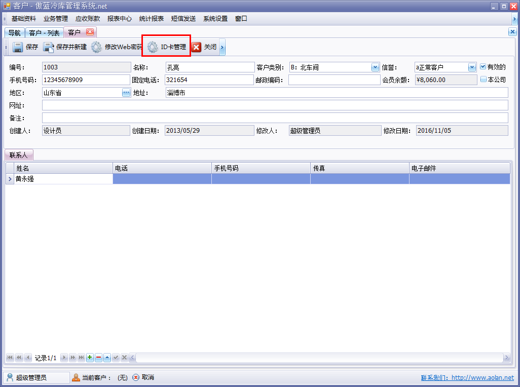 點(diǎn)開編輯客戶資料,點(diǎn)擊【ID卡管理】,如圖: