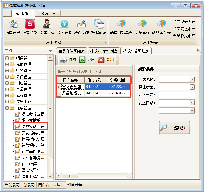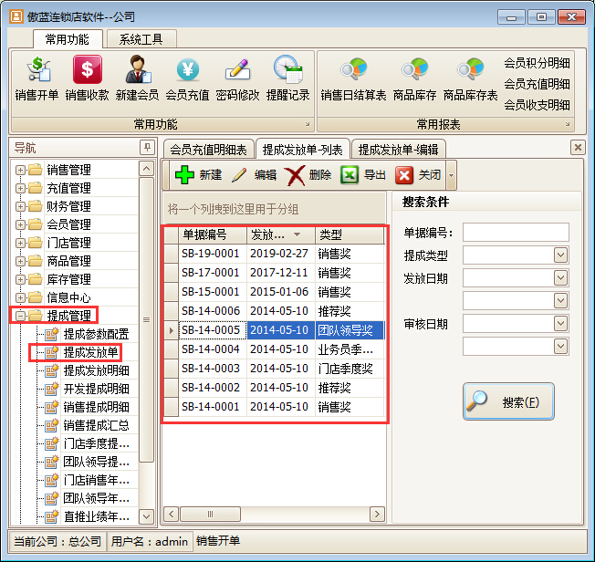 點(diǎn)擊【提成管理】【提成發(fā)放單】打開提成發(fā)放單列表界面,該界面可以搜索到全部提成發(fā)放信息,點(diǎn)擊【搜索】會(huì)刷新當(dāng)前界面信息。