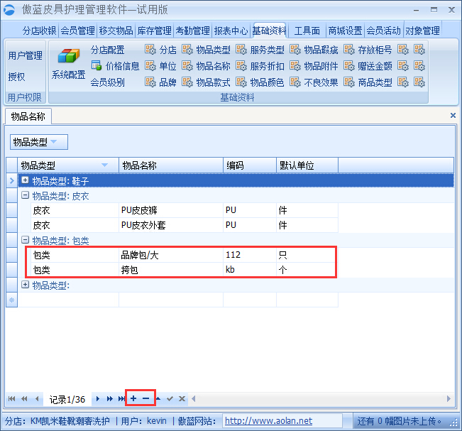 皮具護(hù)理店如何在傲藍(lán)皮具護(hù)理店管理軟件上添加護(hù)理物品名稱、類型