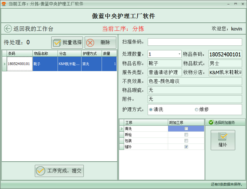 傲藍皮具護理工廠管理軟件專為護理工廠設計,分揀、清洗、護理、維修、質(zhì)檢、包裝、縫補、等業(yè)務,還可以根據(jù)業(yè)務自定義工序,與護理門店軟件完美結合。