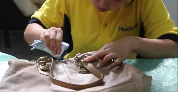 許多朋友問道:“能不能用機(jī)械替代手工完成保養(yǎng),以此來節(jié)省時(shí)間與人力成本么?”回答只有一個(gè)字:“不!”因?yàn)槠ち喜皇遣剂?,而且大部分包包都有?nèi)襯支撐物,一旦遇到水或溶劑就會(huì)變形,所以不能像干洗店一樣放到干洗機(jī)里進(jìn)行洗刷,只能手藝操作。