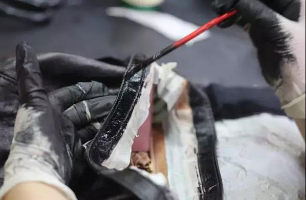 大部分真皮包包在運(yùn)用過程中,邊角和手柄部位極容易磨損掉色,或許劃傷破損。這時(shí)要選用軟性膠水對(duì)破損部位進(jìn)行粘合(切不可以用502)然后進(jìn)行補(bǔ)傷打磨,小羊皮修補(bǔ)時(shí)要分外仔細(xì),以免發(fā)生由補(bǔ)傷失誤而造成很明顯的傷痕及不平整的現(xiàn)象。創(chuàng)傷、磨損部位的修正、還原、創(chuàng)意修復(fù),取決于護(hù)理師的仔細(xì)程度和操作熟練度。