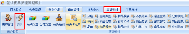 1、點(diǎn)擊基礎(chǔ)資料——授權(quán),如下圖所示: