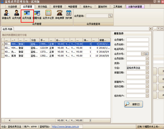 會(huì)員的基礎(chǔ)信息建立好后,傲藍(lán)皮具護(hù)理管理軟件如何給會(huì)員快速的充值,并查看充值信息。