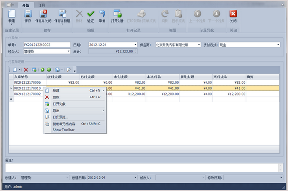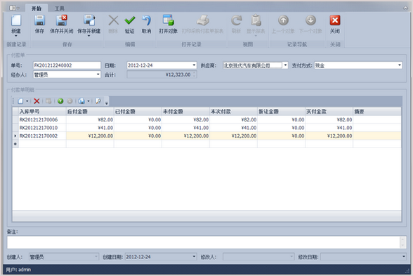 傲藍汽車配件銷售管理軟件配件付款單修改界面