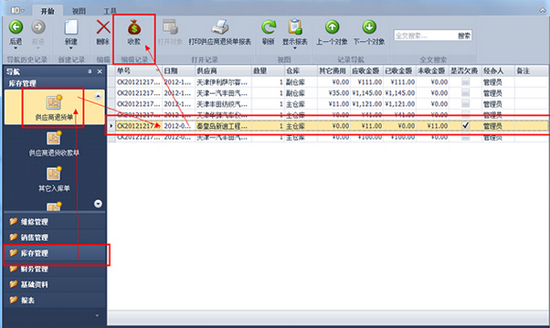 方法二:通過供應(yīng)商退貨收款單列表界面進(jìn)行收款