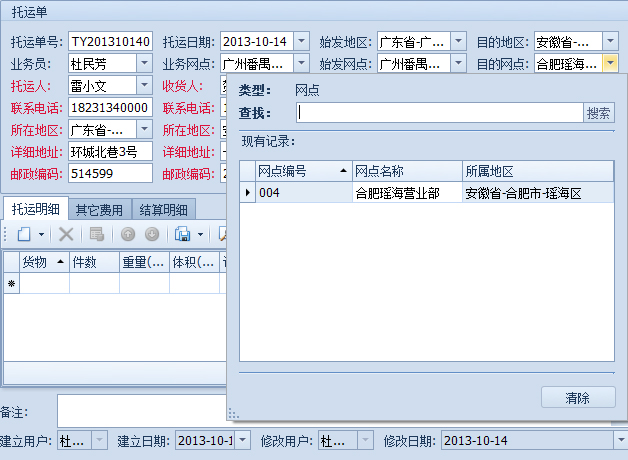業(yè)務(wù)網(wǎng)點:默認為當(dāng)前登錄員工所在的網(wǎng)點。