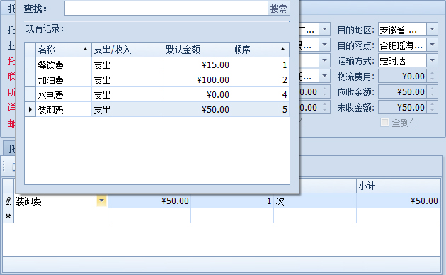 (傲藍物流軟件-添加其它費用明細)