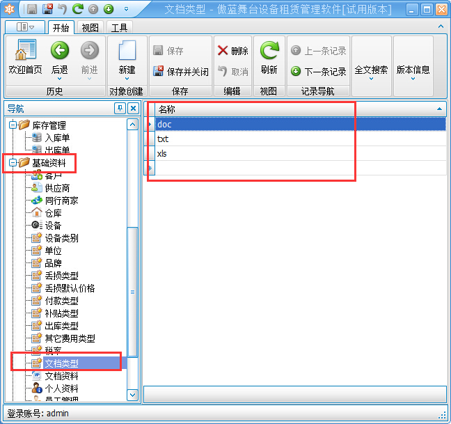 在基礎(chǔ)資料里可以管理文檔類型和文檔資料等信息,如下圖所示: