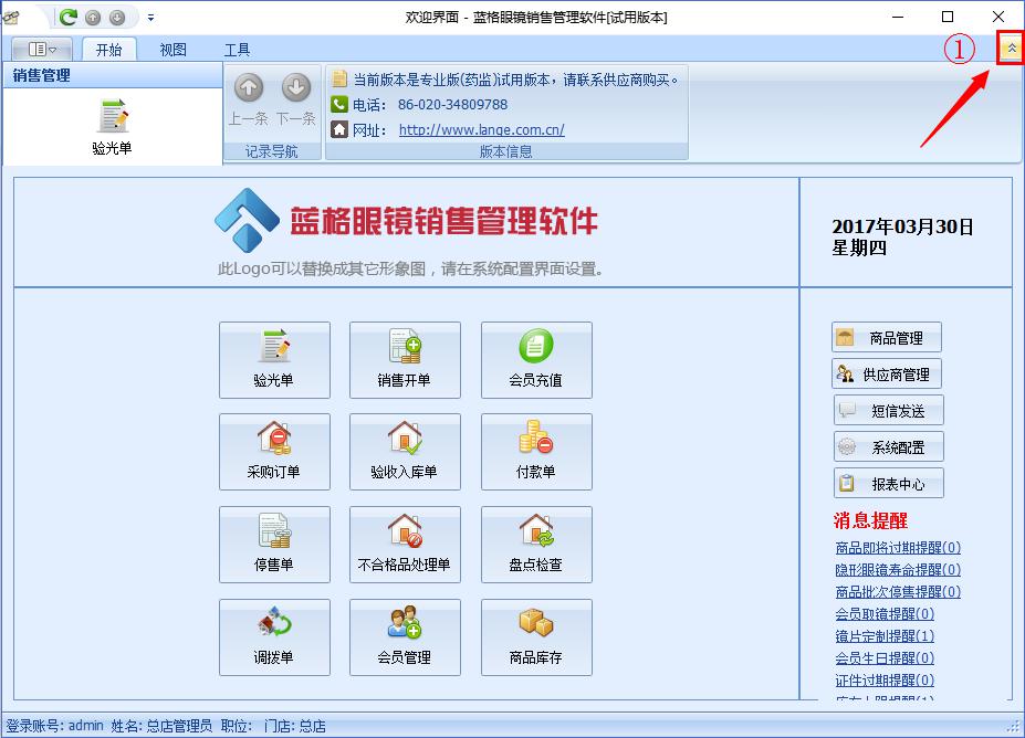 傲藍(lán)眼鏡店管理軟件,導(dǎo)航欄消失怎么處理?